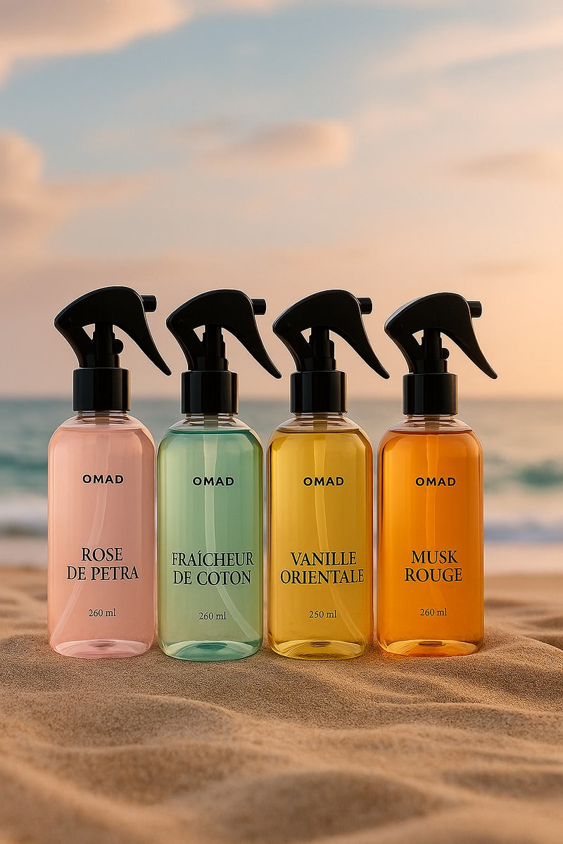 Parce que l’âme d’une maison se cache dans son sillage, OMAD transforme votre quotidien en un voyage sensoriel permanent. Nos créations artisanales ne se contentent pas de parfumer vos textiles ; elles les purifient pour recréer, chez vous, un sanctuaire de bien-être. Redécouvrez le plaisir de textiles qui racontent une histoire, la vôtre.